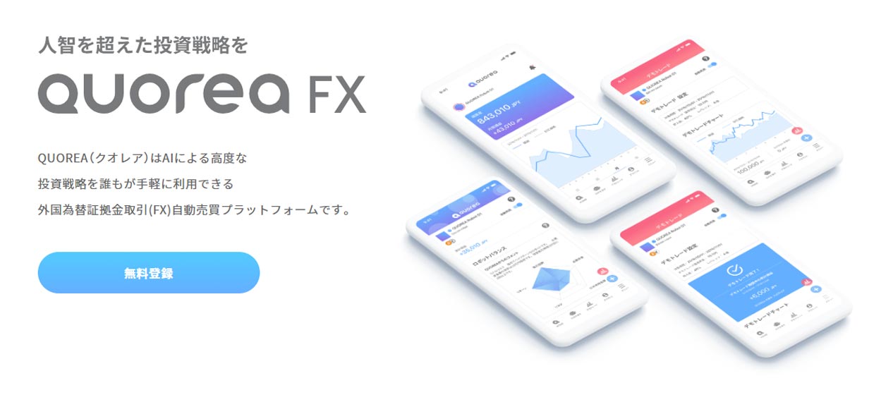 QUOREAの利用者が開発したロボットの成績をAIが判定している点がポイント。この「AI判定値」を参考にロボットを選ぶだけで始められるので、FX未経験でも手軽に利用できるでしょう。