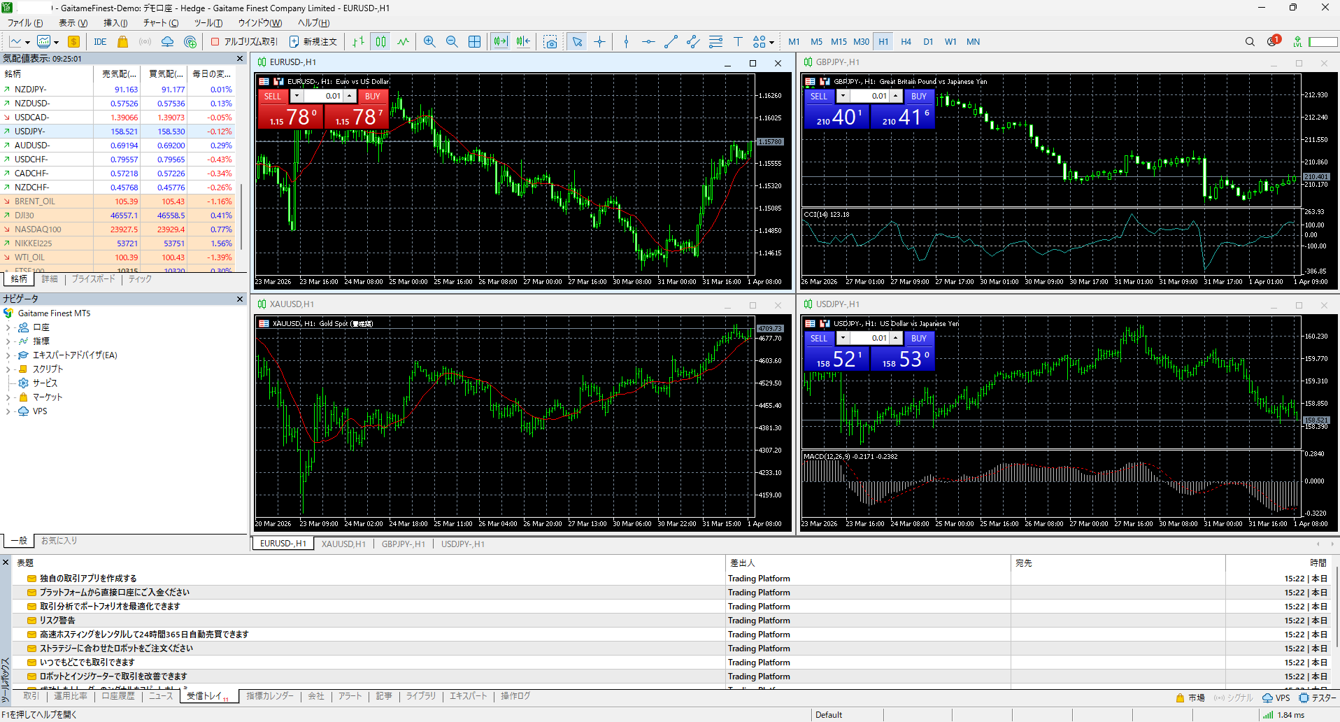 フィリップ証券ではFXだけでなくCFDもMT5による取引が可能なので、株価指数や金(ゴールド)、原油などの商品CFDへの投資も可能です。様々な金融商品でポートフォリオを組みたい人には有力な選択肢となるでしょう。