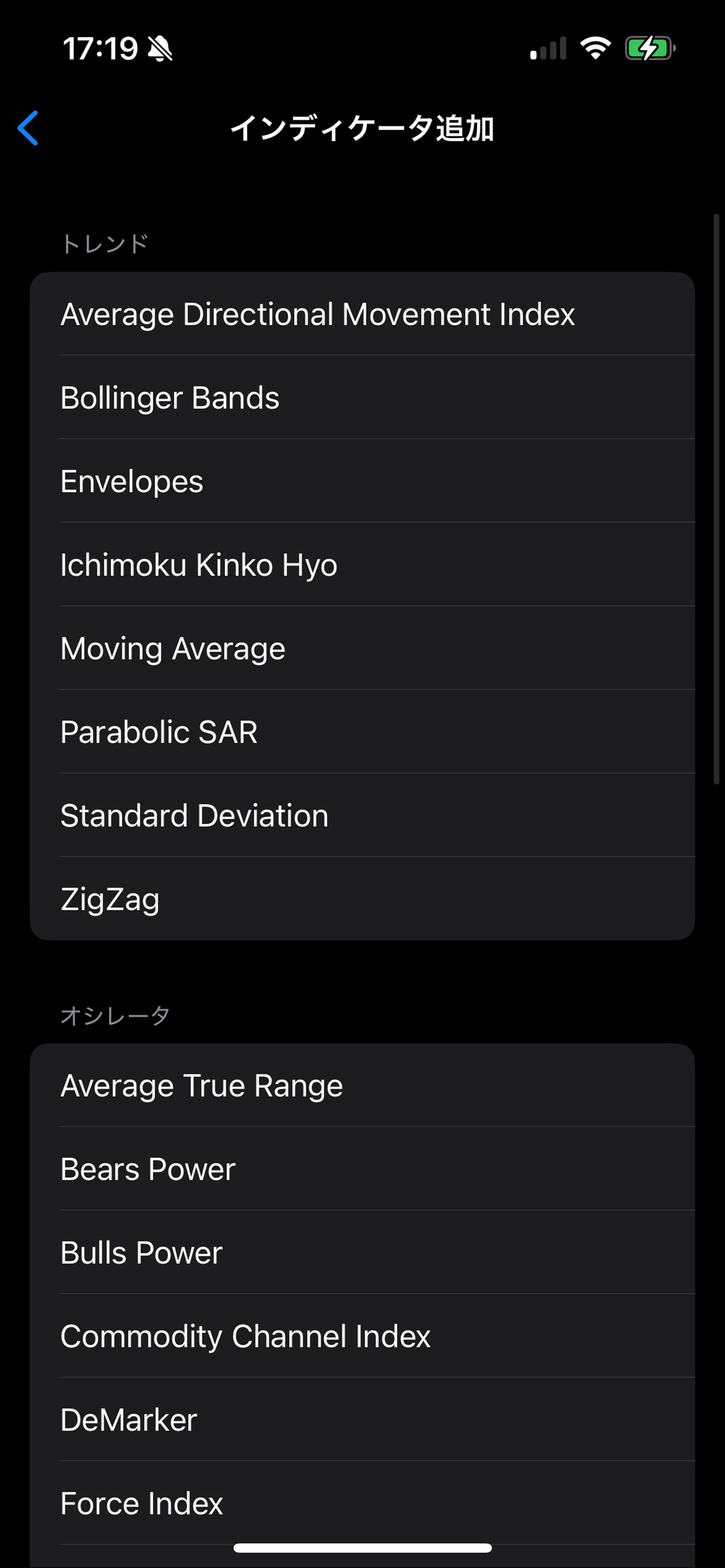 スマホ版ではカスタムインジケーターを追加できないので、非搭載のインジケーターが必要な分析をしたい場合はPC版で行うことになります。