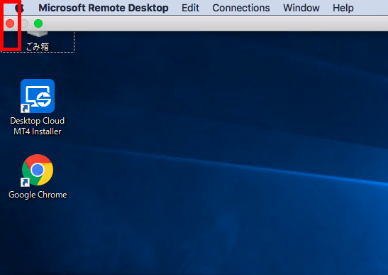 1カーソルを画面上部へ移動し、画面左上赤丸をクリックすることで切断されます