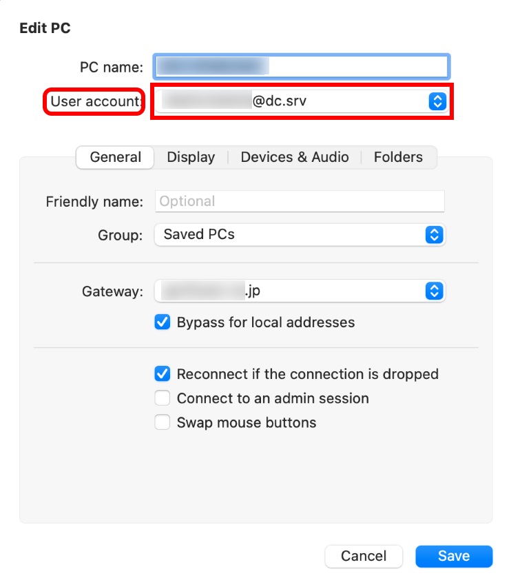 - ユーザー名の変更方法(Microsoft Remote Desktop 10 の場合)