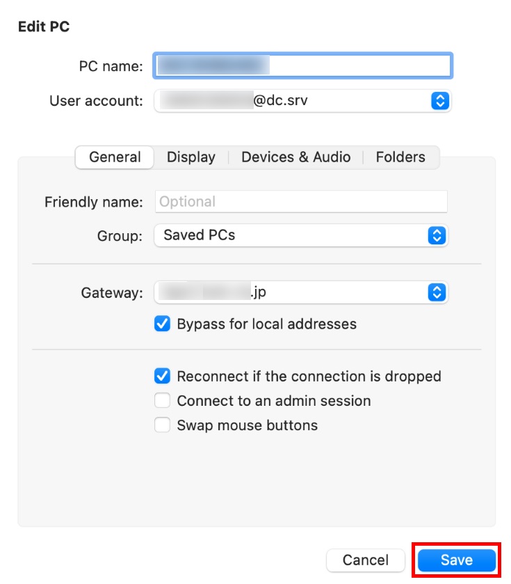 (Microsoft Remote Desktop 10 の場合)