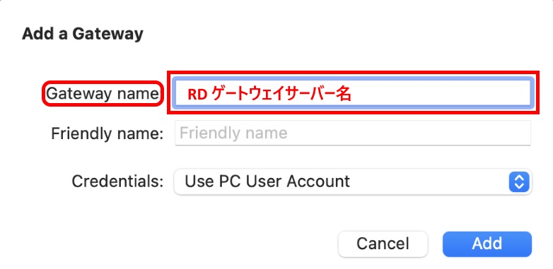 ・Gateway name:RD ゲートウェイ サーバー名