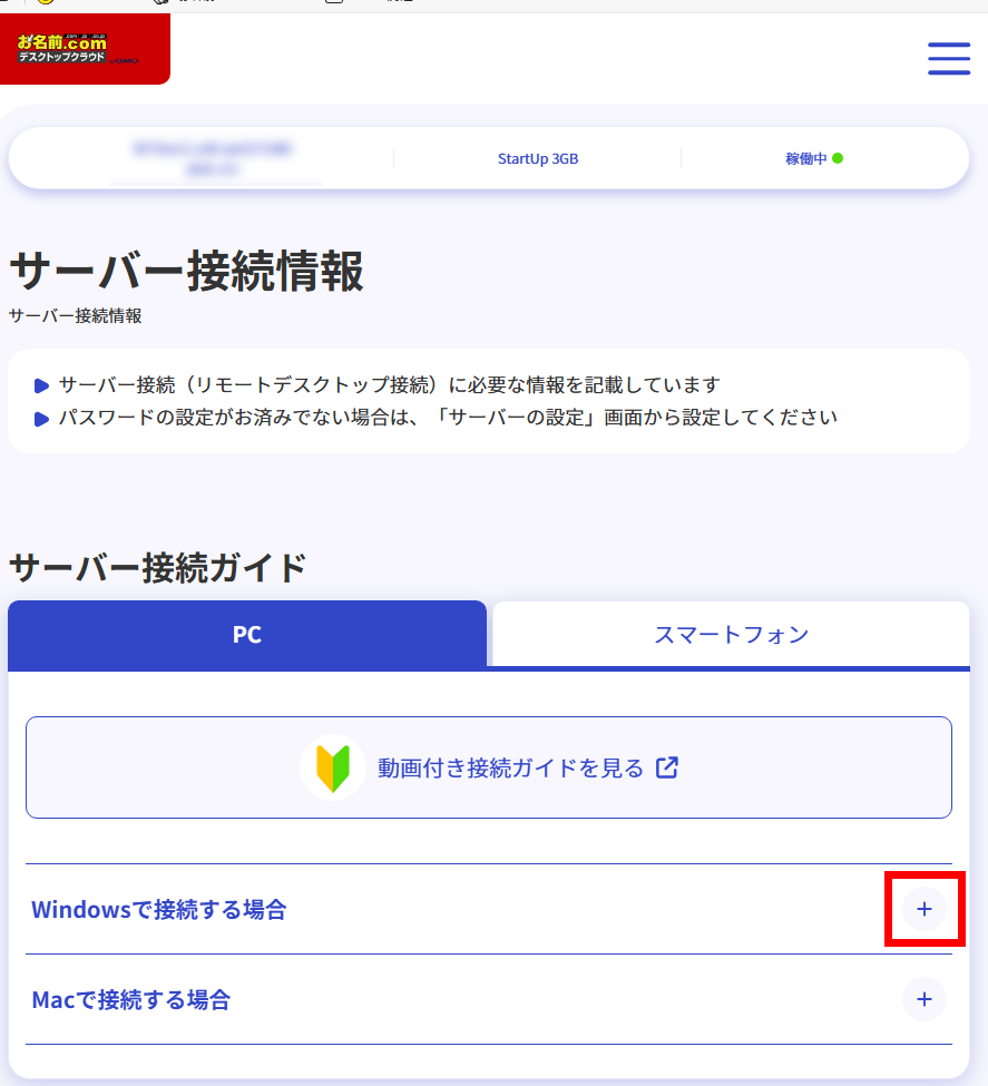 STEP.02にてダウンロードしたRDPファイルを開き接続します。