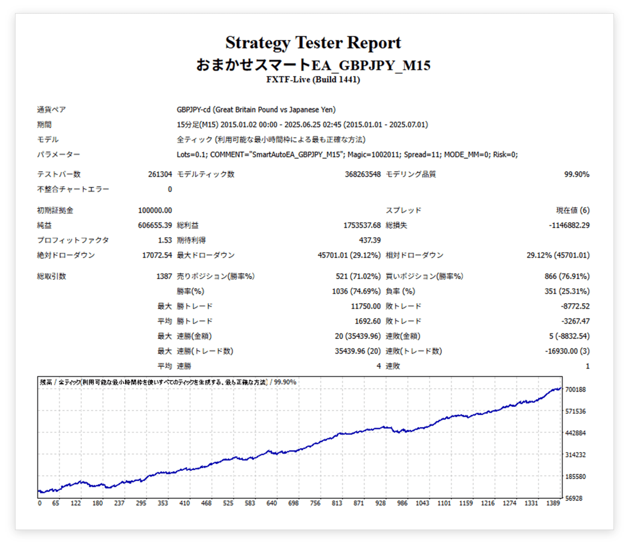 「おまかせスマートEA」はこのポンド円の特性を徹底分析し、ロンドン時間(16時~24時)に集中してエントリー。